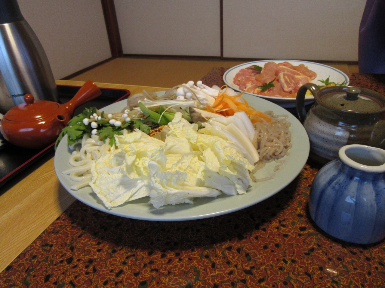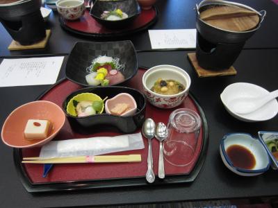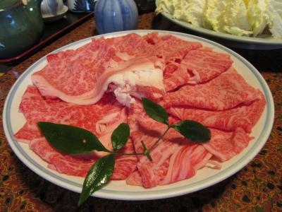 夕食は隣の部屋を専用食事処に開放してくれました。1日目は三田鶏、2日目は三田牛のすき焼きでした。お味の方は割り下の味が絶妙で、肉の旨味が凄く大変満足でした。