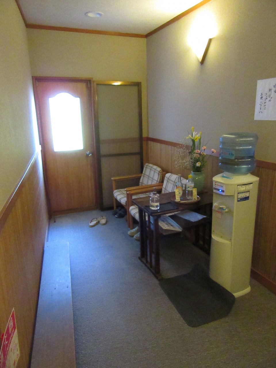 浴室出口にあるウォーターサーバーにコップの備え付けは無いので各自部屋からコップを持っていってくださいと説明がありましたが、中途半端なサービスなら要らないかと。