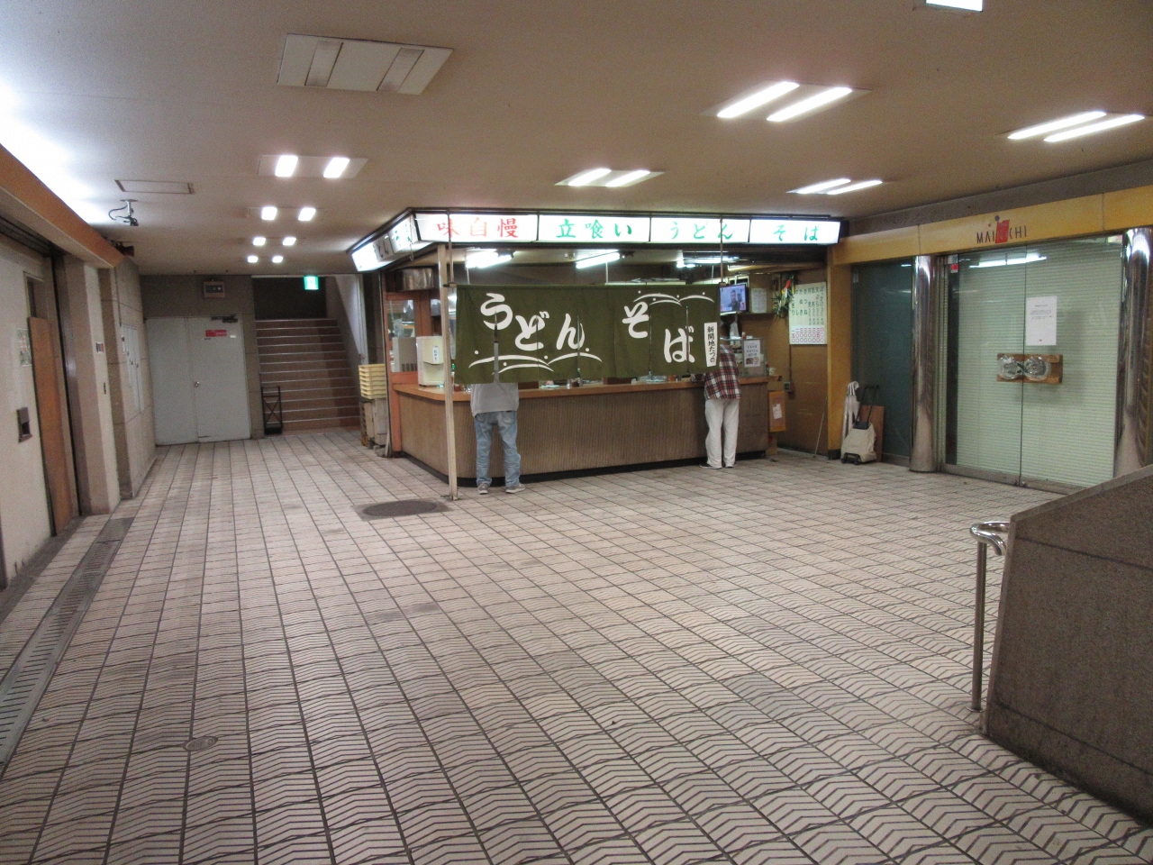 東改札を出て前にある8番出口方面に進み階段出口途中の踊り場にありました。