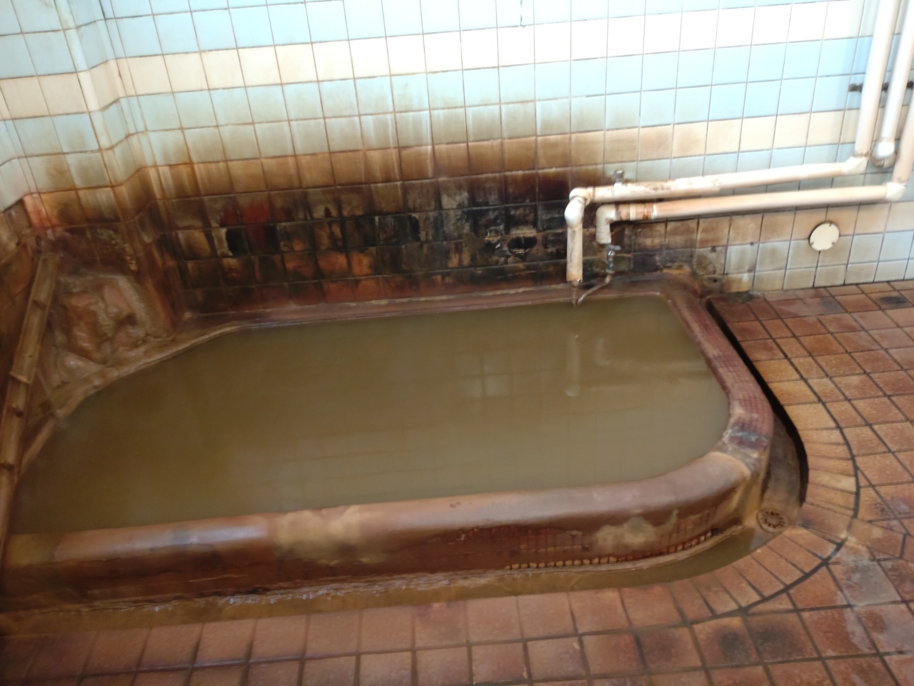 温泉は男女別の内湯、露天風呂は1つしかないため混浴でした。泉質は炭酸泉で湯量は豊富です。鉄分が含まれているため酸化すると赤茶けた色のお湯になるとのことでした。見た目とは違い浴感はあっさりした感じであまり印象に残らなかったかな?