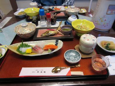 夕食は広間で頂きました。1品1品手の込んだ料理で山間の宿では及第点だと思いました。