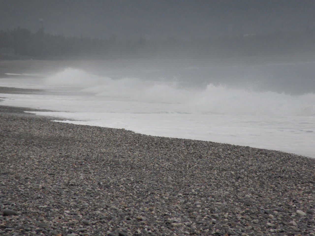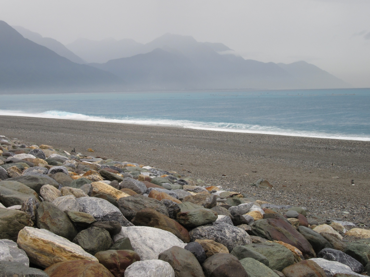 があります。午前中の方が美しく見えるというので、一番最初に寄ってもらいました。生憎の雨模様でしたが、海岸線が延々と続き遠くに切り立った山々が見え大変美しい風景でした。引波の際の砂利が転がるザーと言う音を聞いていると何故か和みました。海岸は砂利浜で大理石も含まれているそうです。持ち帰りは禁止で違反者は高額な罰金を取られるそうです。遊泳は禁止です。台湾東海岸は急に水深が深くなっている所が多く海水浴には適さない場所が多いそうです。- 旅行時期