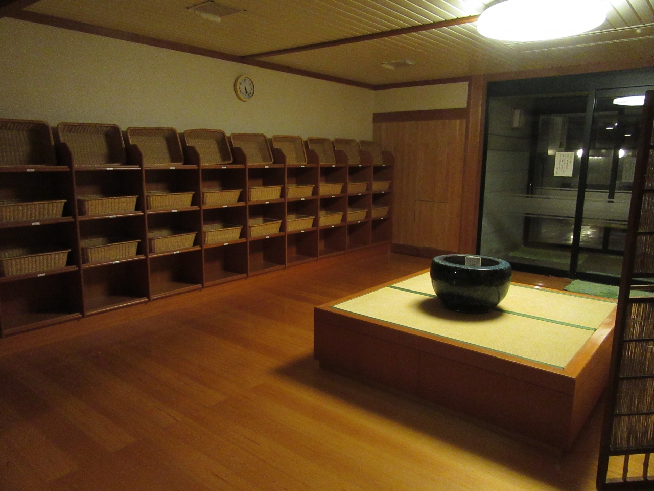 館内は食堂がある本館、西館、東館があり、一番設備の整っている東館の和室を用意していただけました。部屋にはトイレ、洗面は東館の寂聴の間以外は無いそうです。共同の洗面、トイレを利用してくださいとのことでした。