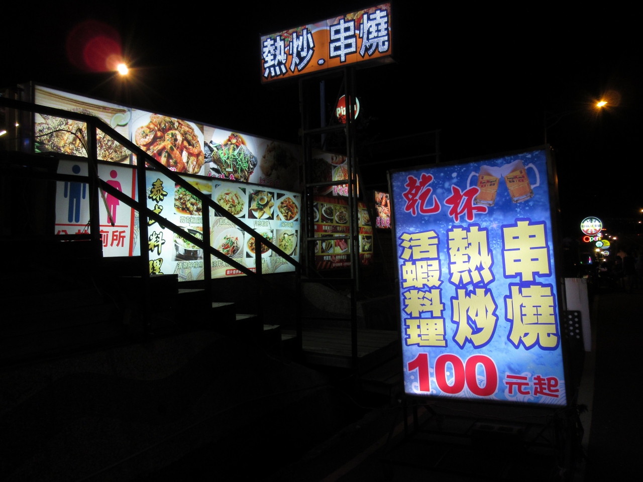 小湾のホテルから徒歩で一番近い熱炒(居酒屋)です。墾丁夜市の入口はこのあたりからでした。