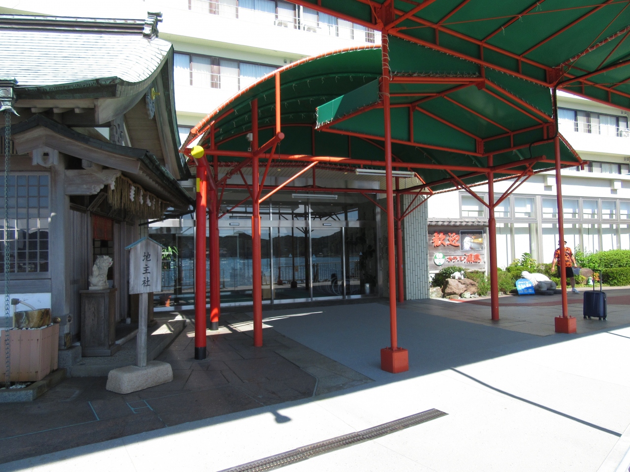送迎船は午後3時以降に運行とのことなので、浦島桟橋から送迎車で(ここが送迎バスの発着場に指定されています)ホテル入りしました。