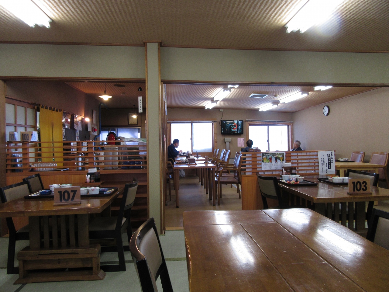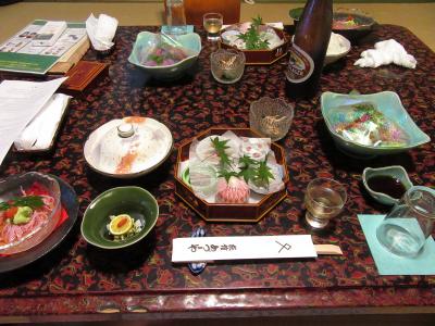 食事は玄関脇の食堂で頂きました。美味しい食事と豊富な地酒で大変満足でした。
