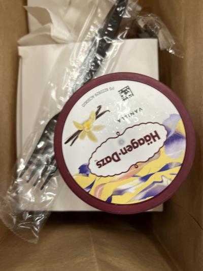中見は、ポロネーゼスパゲッティ、ケーキ(選べる) ハーゲンダッツアイス、コーヒーのセット。