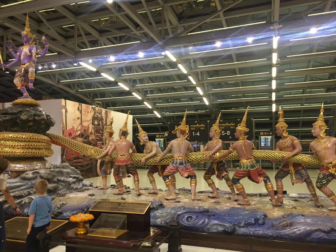 サムイ島への旅行の際にトランジットで利用しました。とにかく広いので、相当歩きました。時間もそれなりにかかりますし、荷物を持っていると大変かも。入国、出国ともに30分くらいかかったと思います。他の方の口コミよりもスムーズな印象でした。三階の免税店は豊富で目移りしますね。セキュリティ外のコンビニも街中よりはだいぶ高いです。