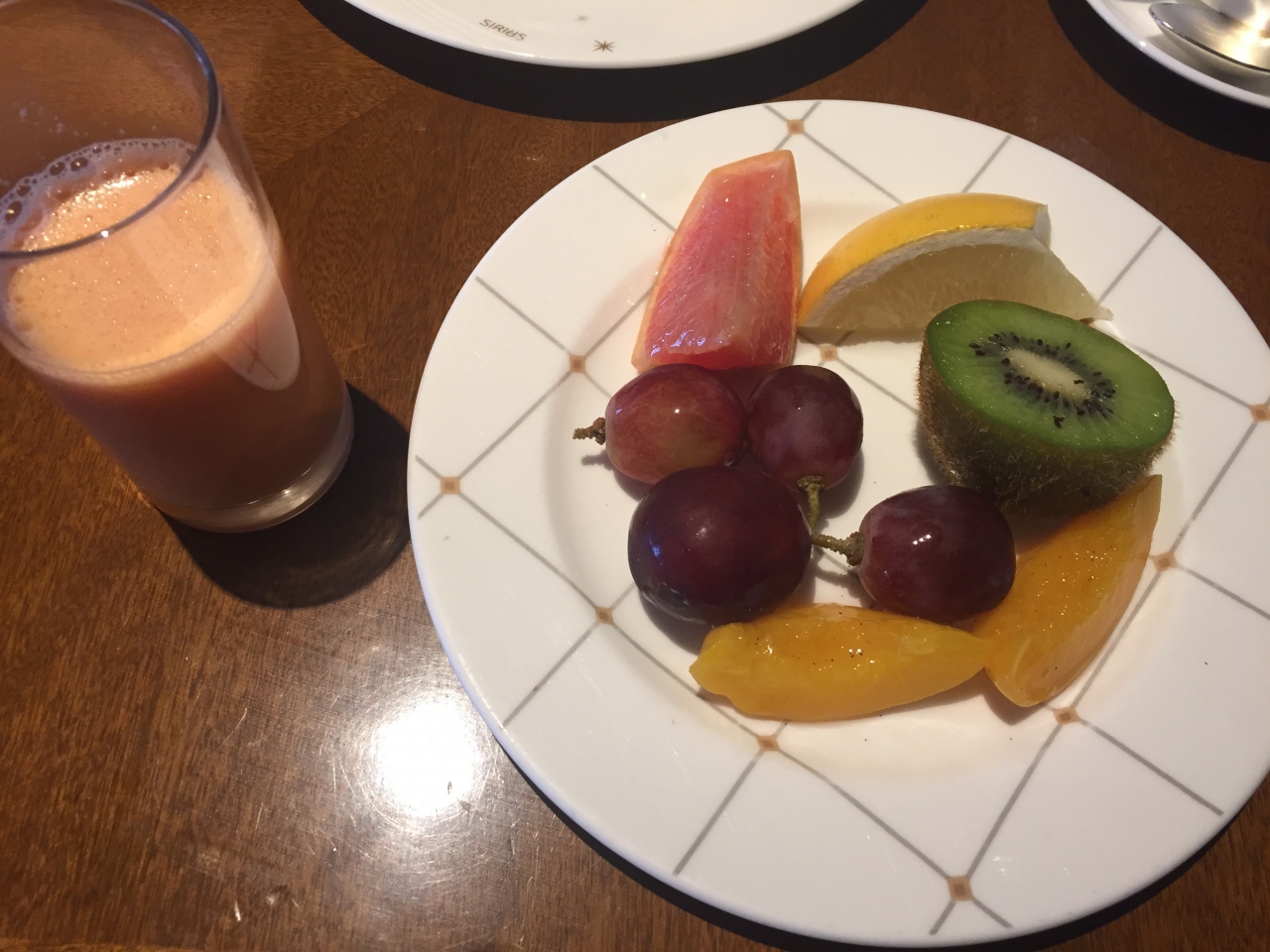 ロイヤルパークホテルに宿泊したので2日続けてこちらで朝食をいただきました。個別でたのむと3000円くらい。70階からの景色はとてもすばらしくお天気も良かったので遠くまでみわたせて景色だけでも十分な価値があります。お味や内容はまあ普通かな。パンとかおかずの種類もそんなに多くはなかったです。新鮮なフルーツが多めだったのがうれしかったです。