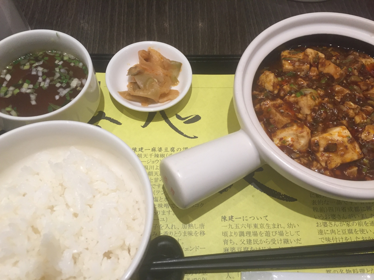 日曜日の夜の早めの夕食としていきました。団体のお客さんが入っていましたが、待ち時間はなく席に案内されました。メニューはシンプルで、麻婆豆腐か麻婆豆腐入りの麺かのどちらかというかんじ。定番の麻婆豆腐をいただきました。テーブルの山椒をかけると風味も良くなりおいしかったです。