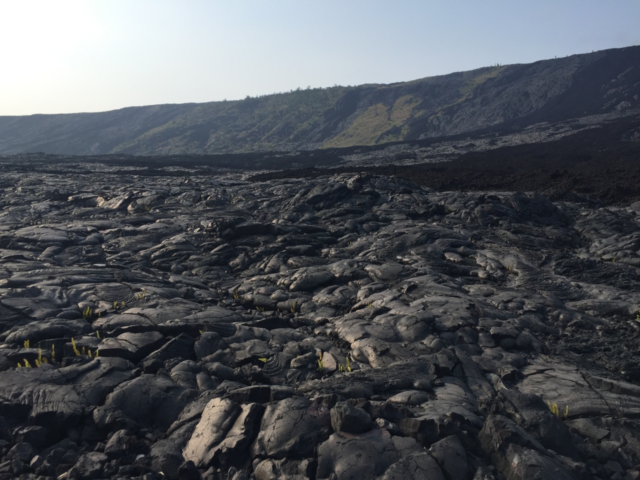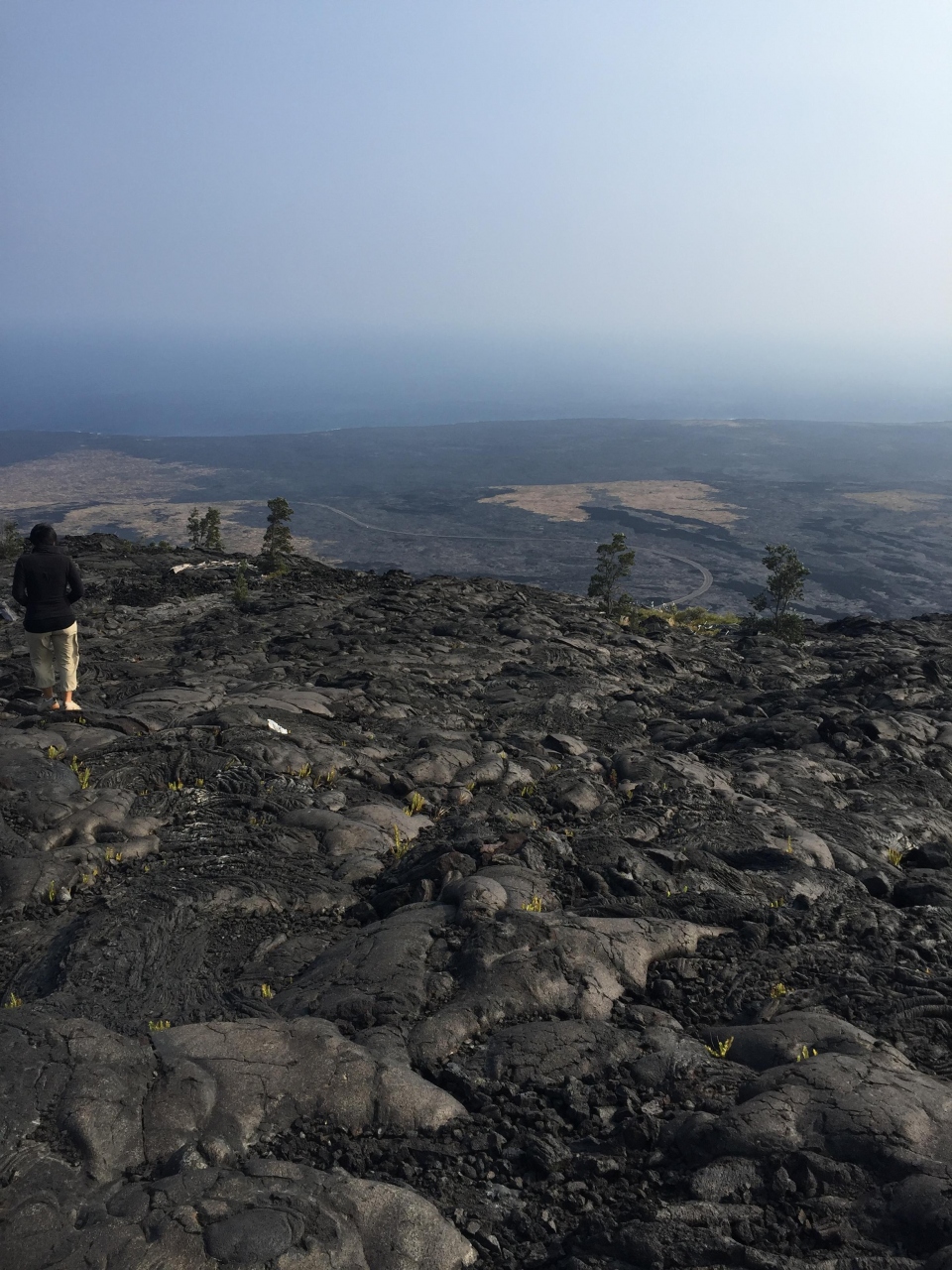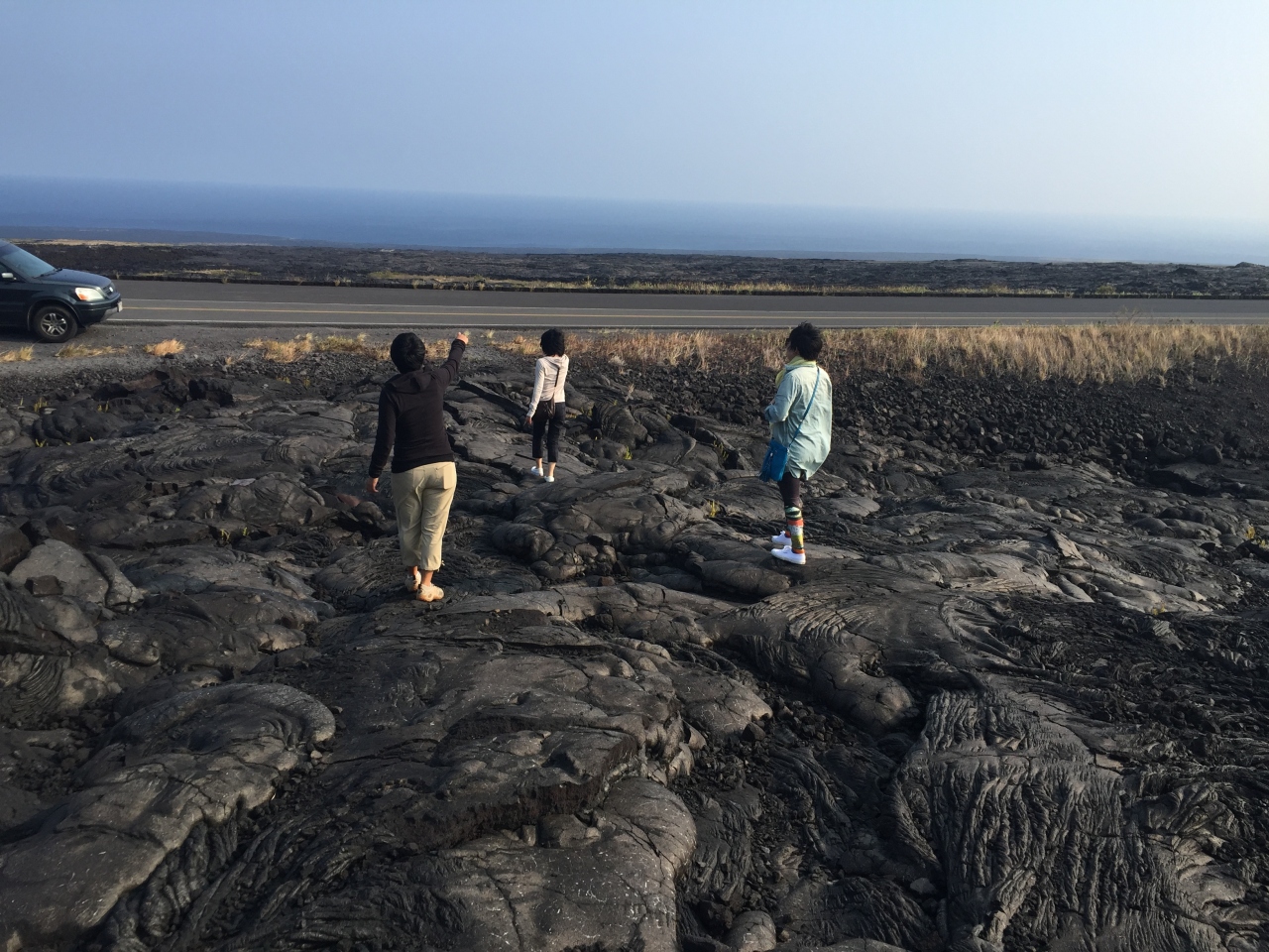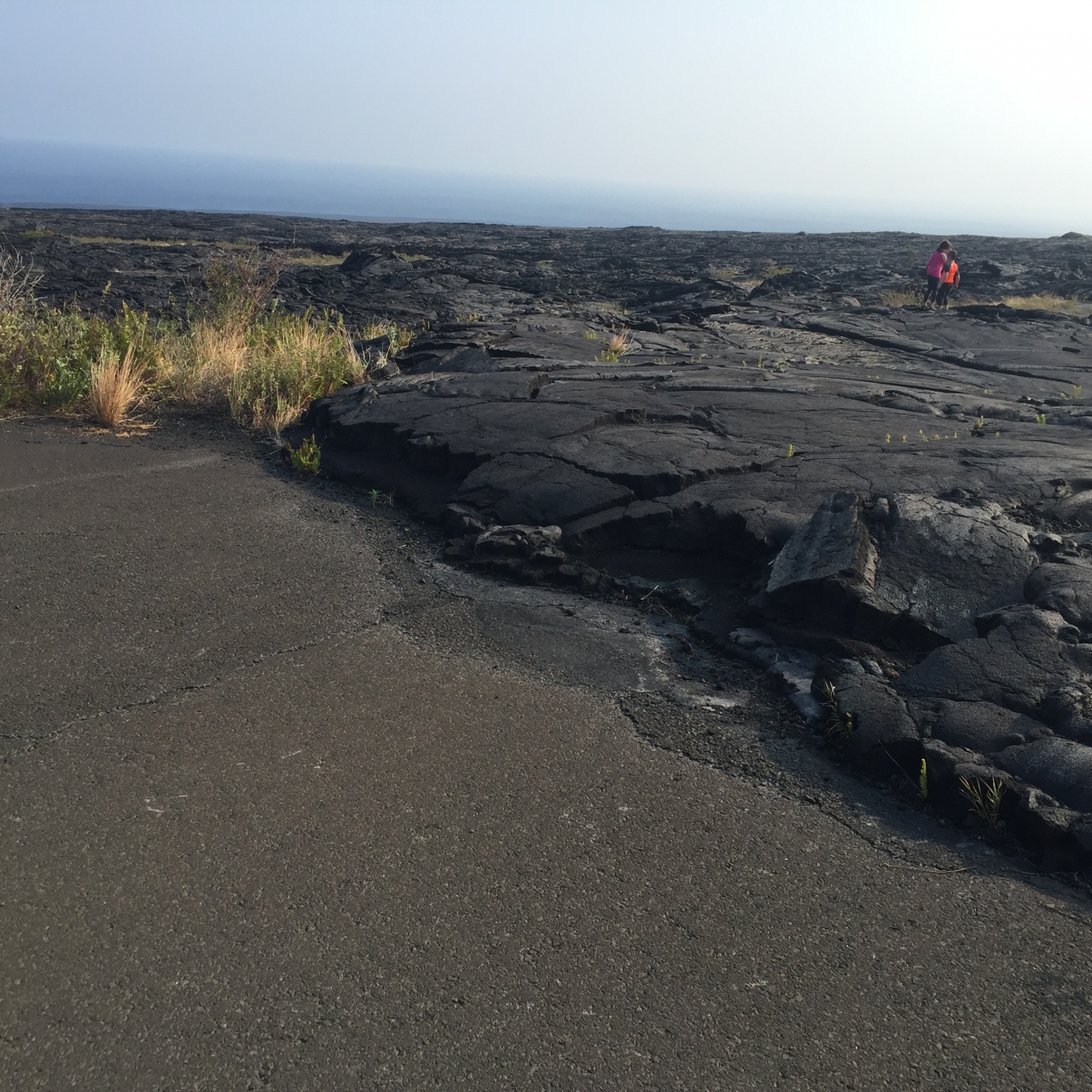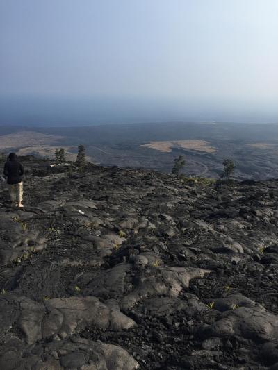 貸し切りのツアーをお願いしてキラウエア火山見学にいきました。もっとも圧巻で来てよかったと思ったのは、この風景が見られたことです。見渡す限りの溶岩がつくった大地。自然への畏怖を感じずには入れれませんし、美しい光景に感動します。ぜひ寝転んで自然の岩盤浴を楽しんでみてください