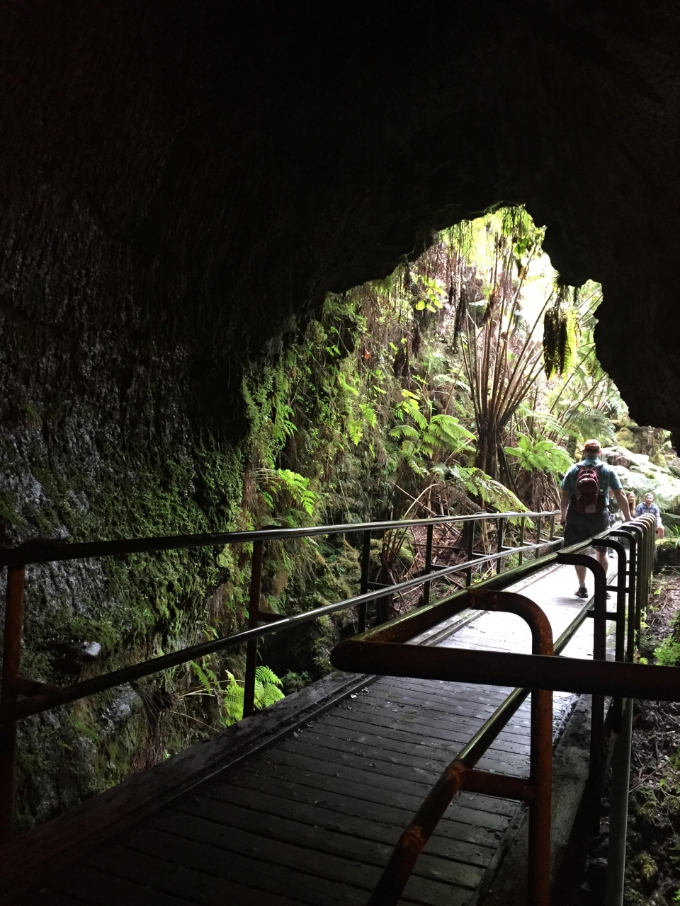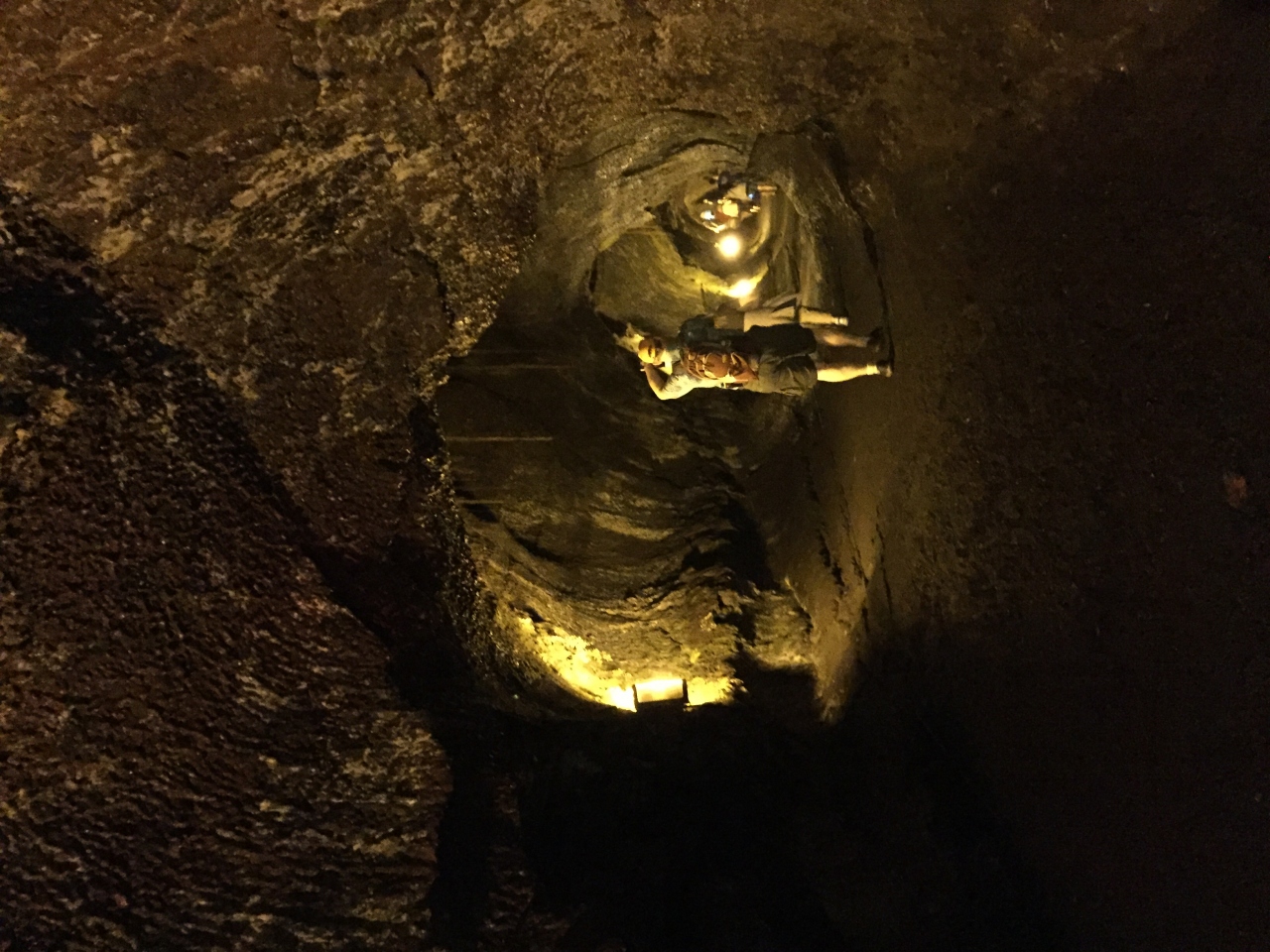 溶岩でできた自然のトンネル。駐車場から10分くらい、いきは少し急な坂道を歩きます。(帰りはなだらか)途中も熱帯らしい緑のなかを通るのでとても気分よく歩けます。
