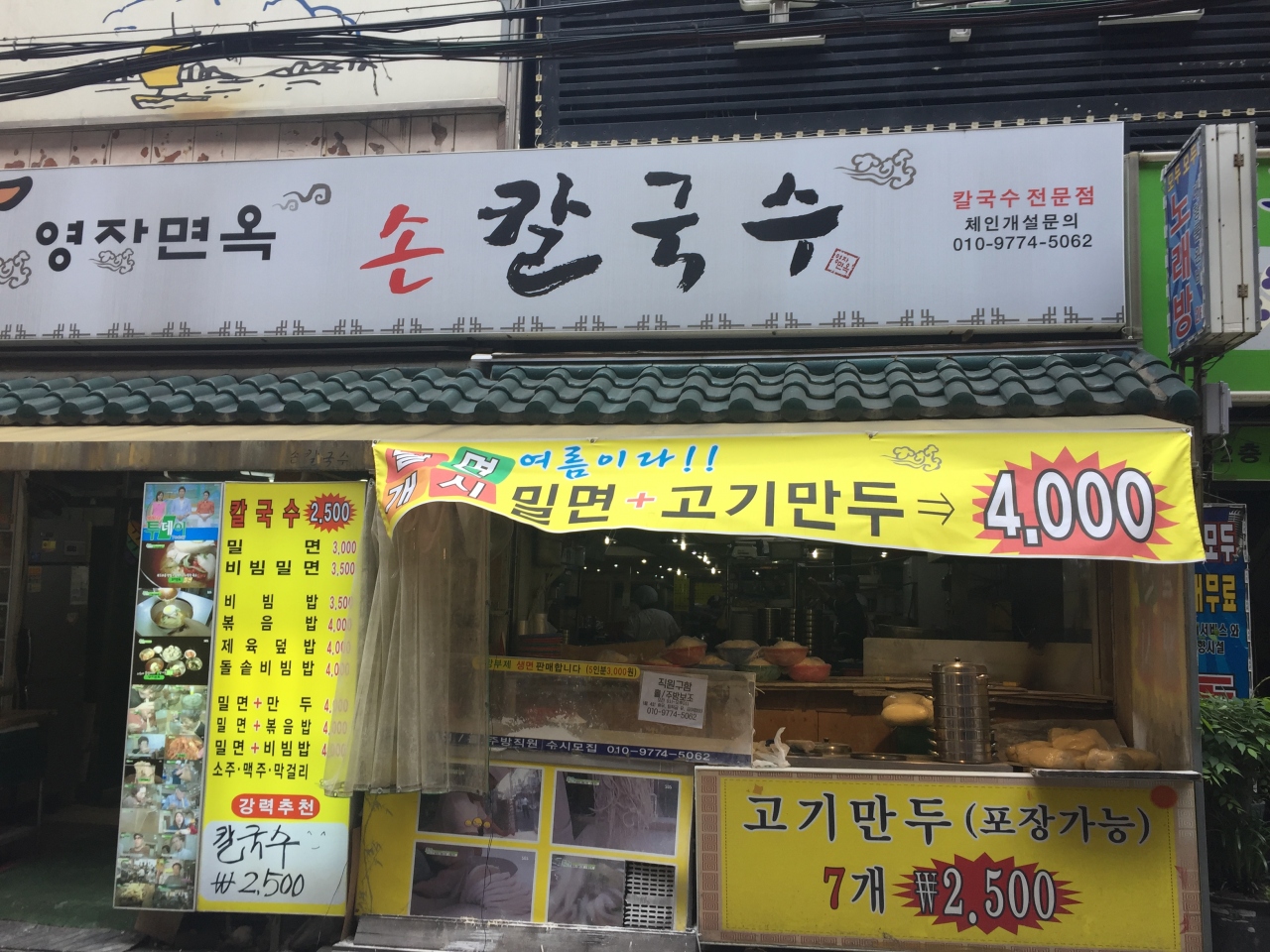 釜田市場をうろうろしていて偶然みつけたおうどん屋さん。店先で手打ちうどんをうっていて、うちたてのおうどんが食べられるならと思って入りました。