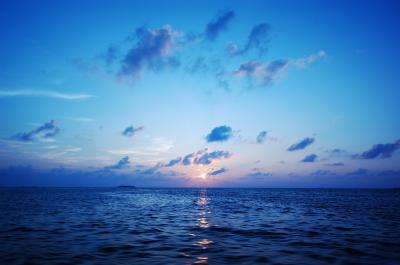 ホテルの島から、空港があるマーレに移動中にボートから見た夕日です。夕日...