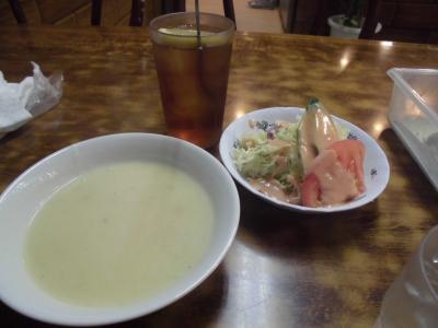 スープは あっさり、サラダは ドレッシングが甘い サウザンでした。沖縄に多いです。
