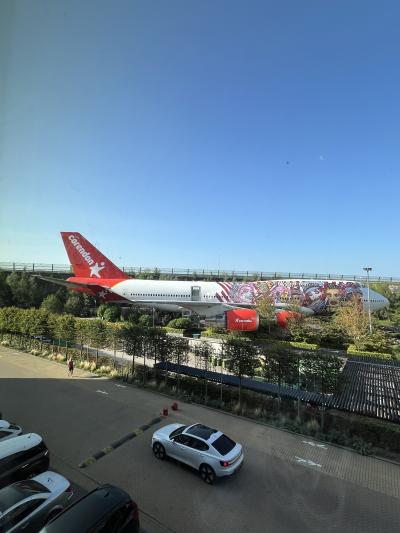 飛行機があるホテル(^^) でも シャトルバス には気をつけて! ちっちゃくて 気がつかない ホテル名
