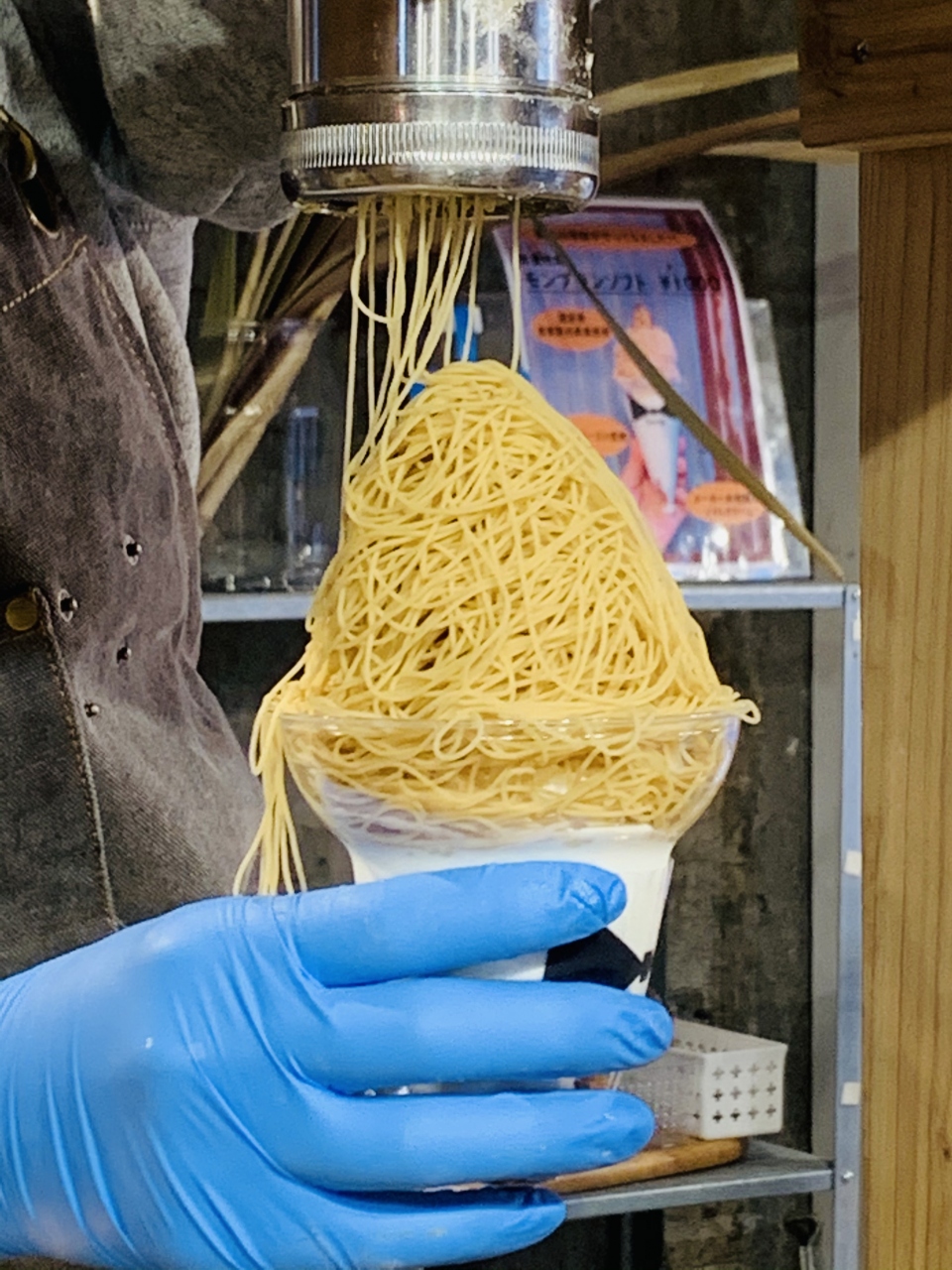 人気の秘密は 〈生しぼり モンブランケーキ〉です。