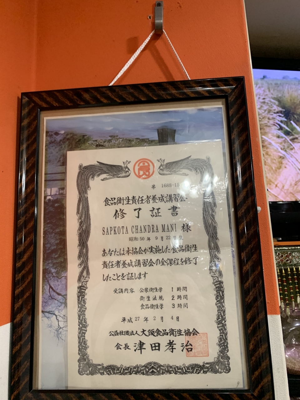 〈食品衛生責任者養成講習会 修了証書〉