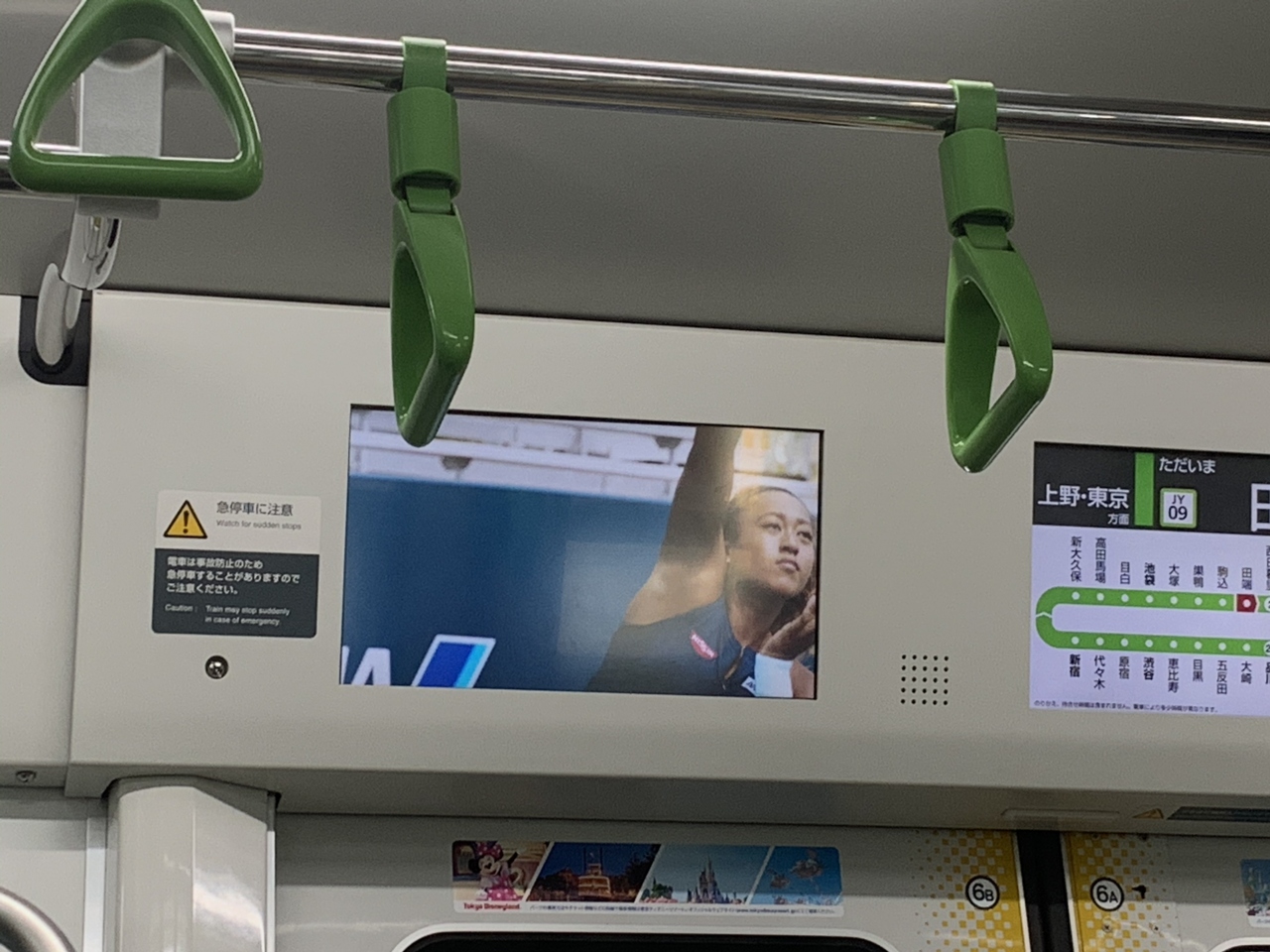 車内の液晶モニターでは CMが流れているので、退屈しません。