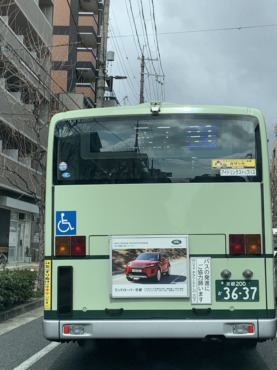 バス後部『ドライブレコーダー搭載 見守り中』のステッカーが