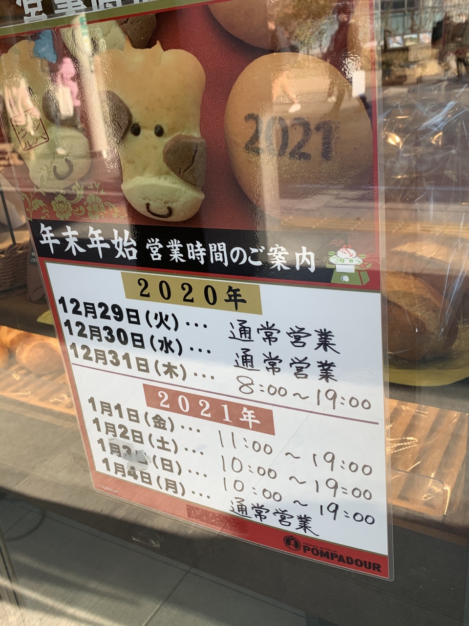 この時は 年前だったので、年末年始営業時間のご案内がありました。