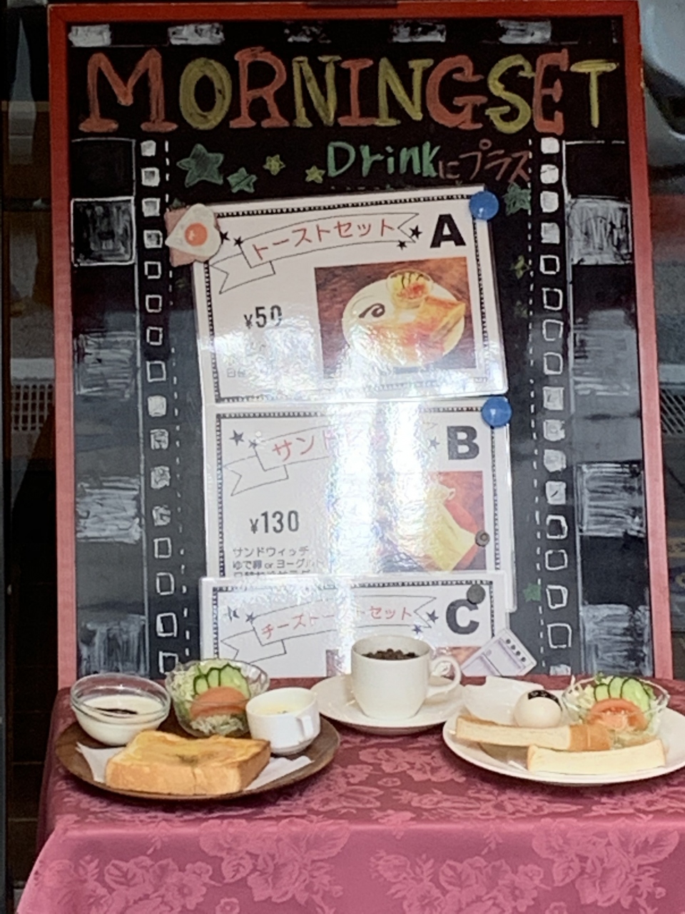 〈モーニングセット〉ドリンクにプラスで「トーストセット」他…ありました。