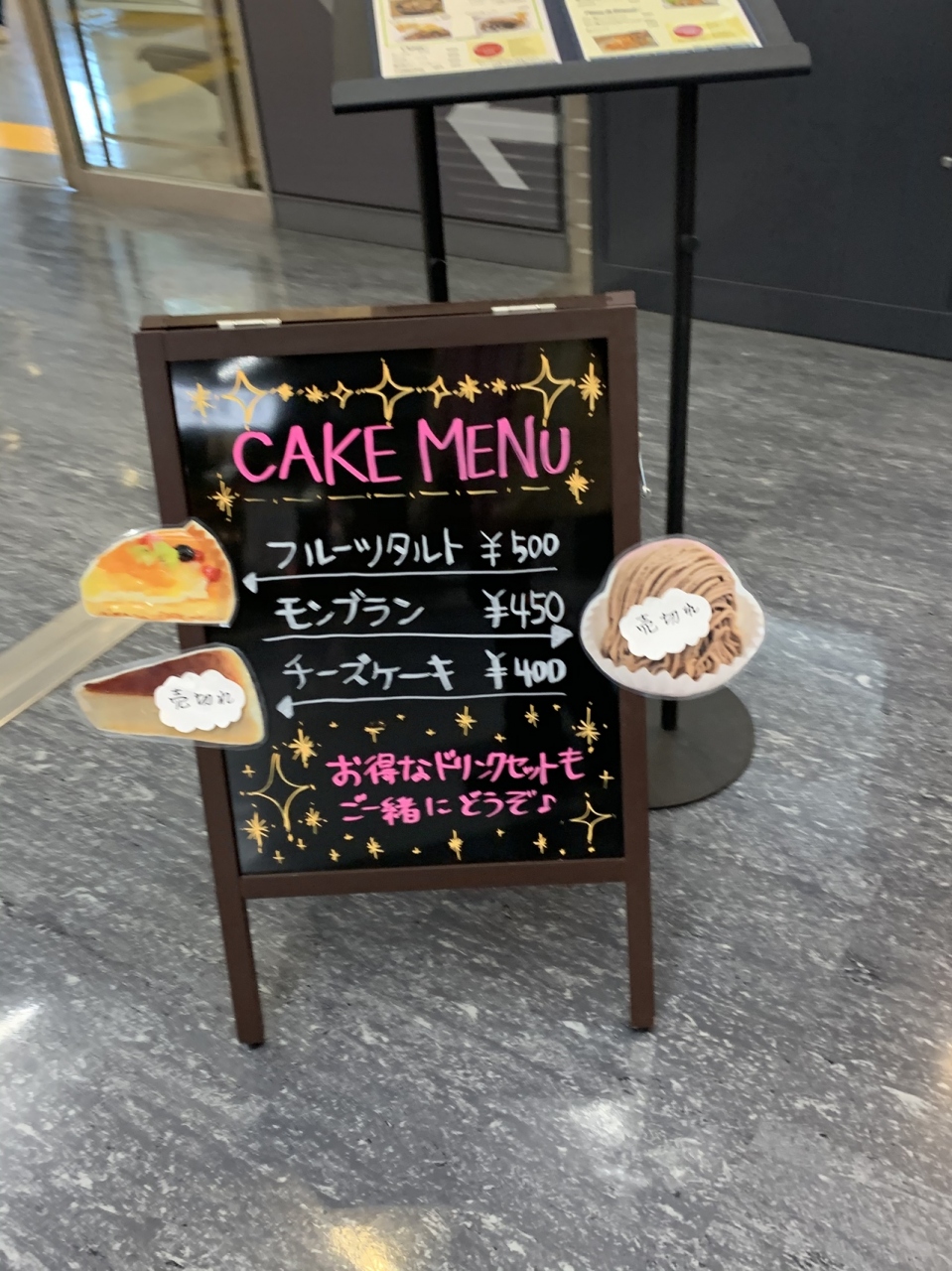 「フルーツタルト」「モンブラン」「チーズケーキ」などのケーキのメニューもあります。
