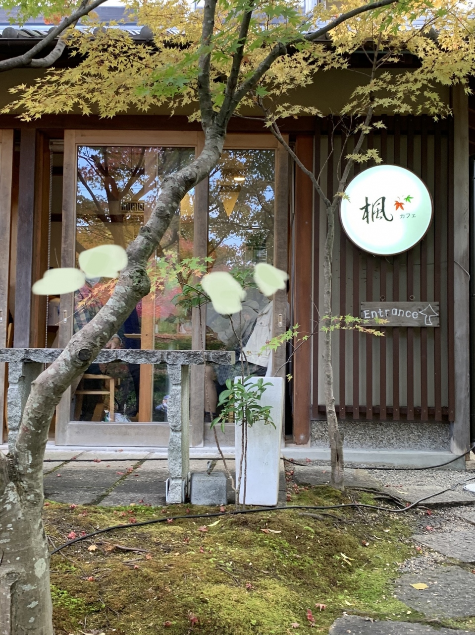 京都 嵯峨野「二尊院」「清涼寺(嵯峨釈迦堂)」へ行った際に 紅葉がキレイなカフェがありました。