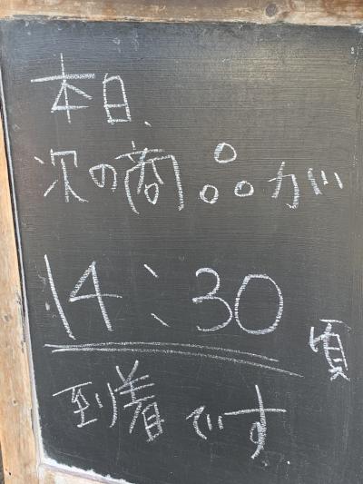 店頭に 〈本日 次の商品が 14:30頃 到着です〉と黒板に書かれていました。