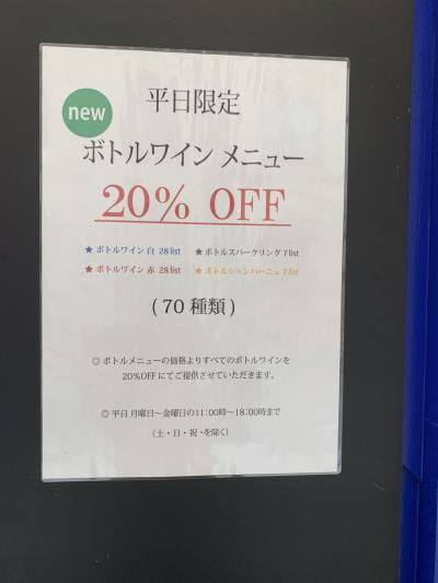 〈平日限定 ボトルワイン メニュー 20% OFF 〉
