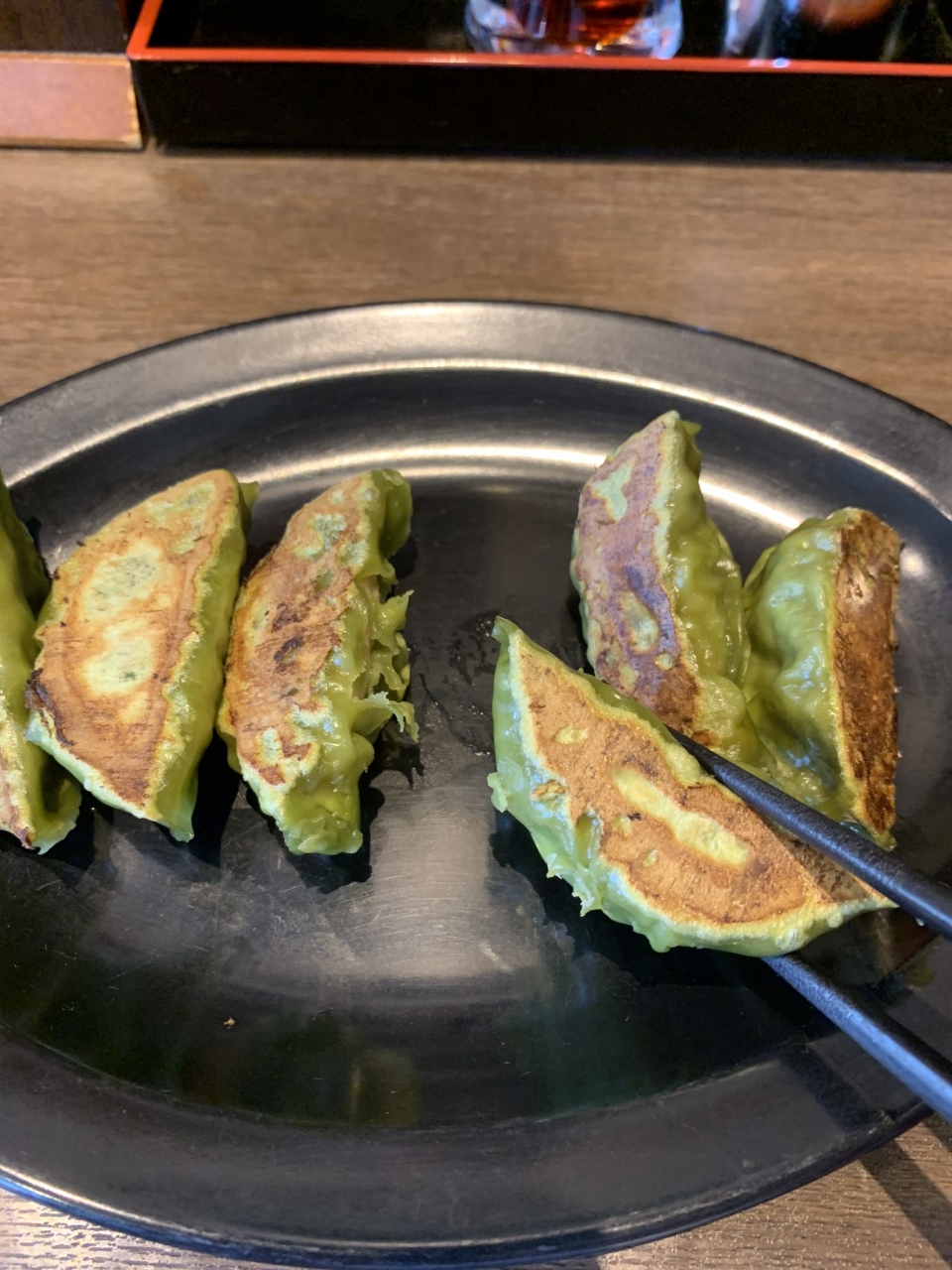 ラーメンを食べるほどは お腹すいていたわけじゃないから 軽く「宇治抹茶餃子」を オーダー。
