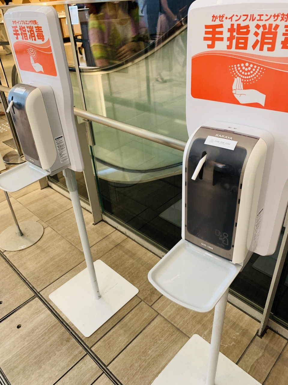 入り口にある 手指の消毒の機械が、手を出したら自動で 消毒液が出てきたので