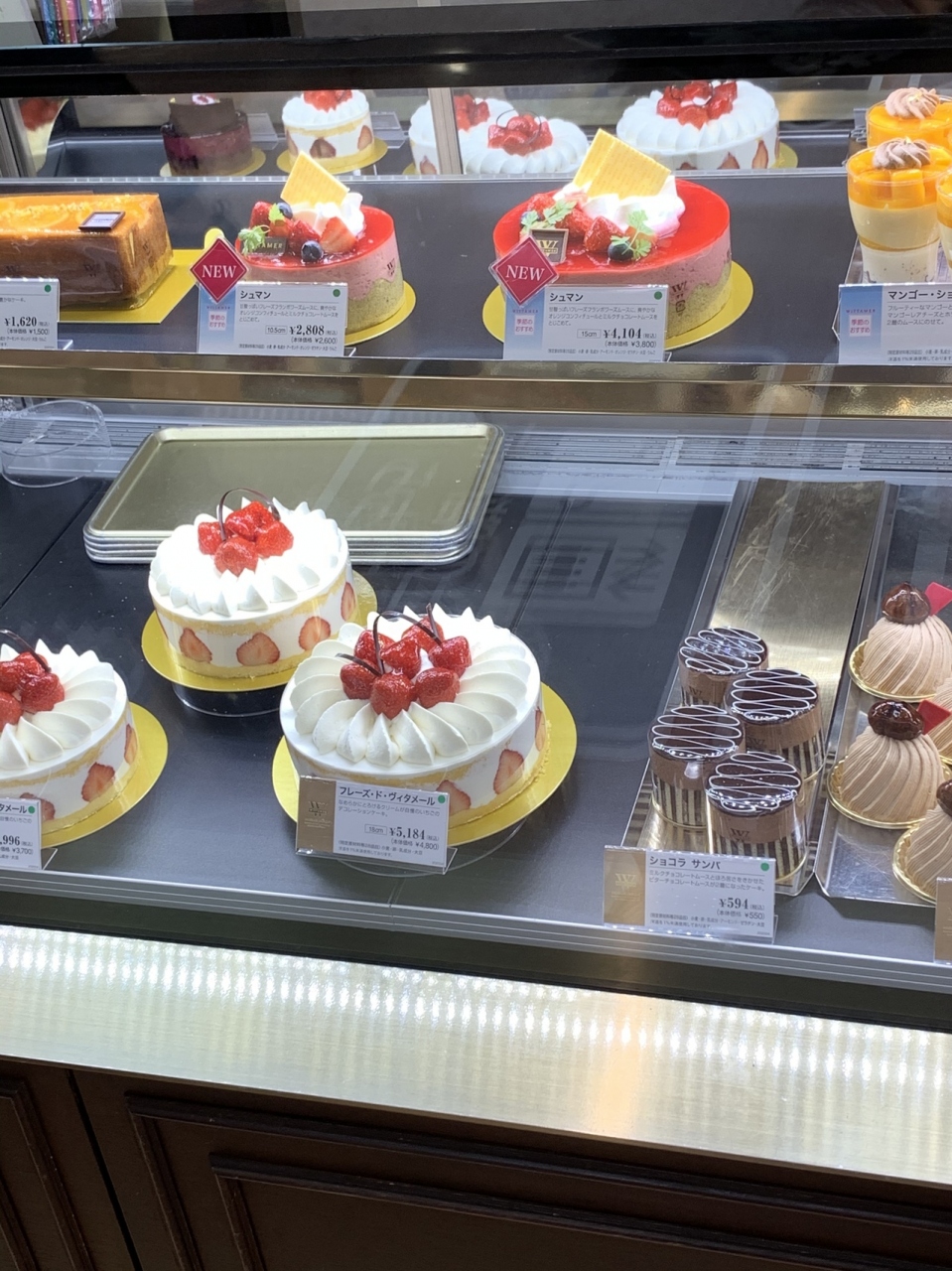 ショーケースには 美味しそうな ケーキが ズラリと並んでいます