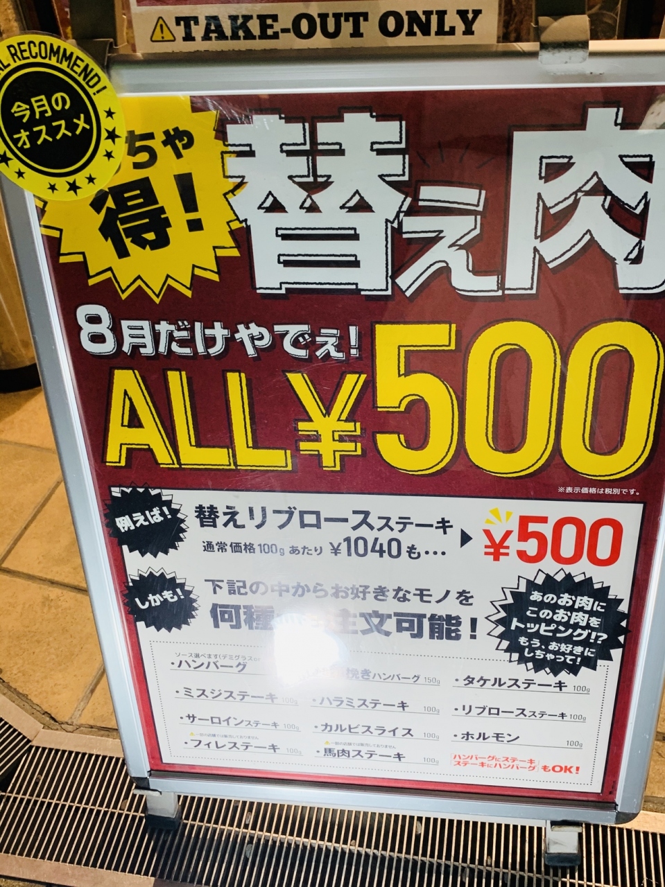 〈 8月だけやでぇ めっちゃお得、替え肉 ALL ¥500〉がおすすめ