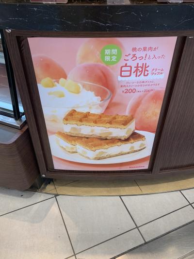 他にも 期間限定 桃の果肉がごろっ!と入った 「白桃クリームワッフル」
