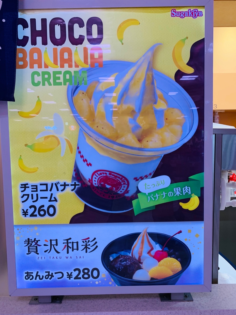 「ソフトクリーム」や 「かき氷」 「チョコバナナクリーム 」もあるから 女性や お子さまにおすすめ
