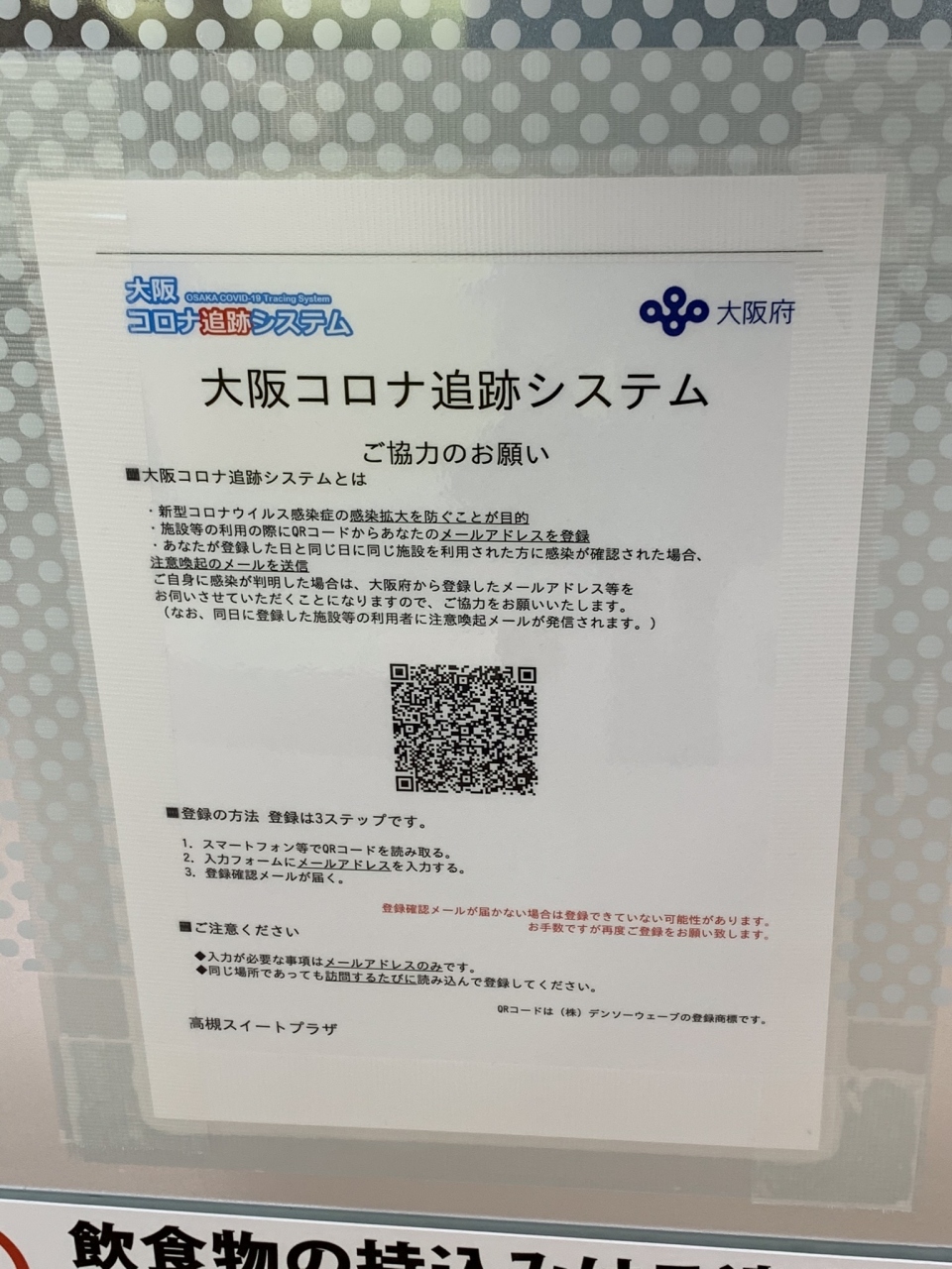 〈大阪コロナ追跡システム〉の貼り紙があった