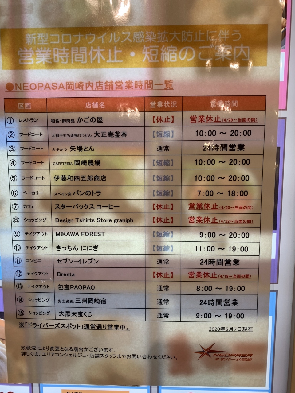 コロナウイルスの影響で、営業休止 や 短縮しているお店が多い中