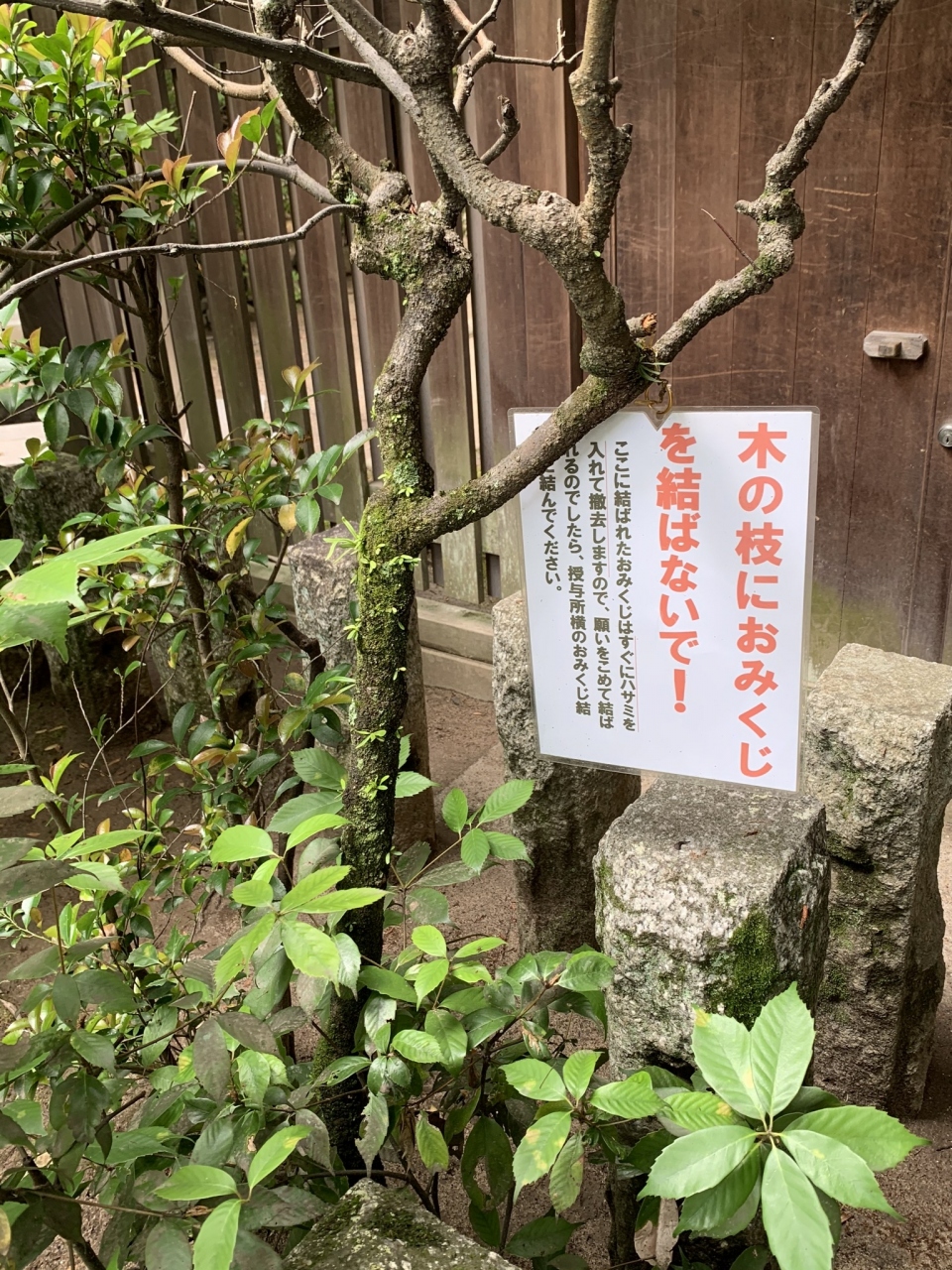 門の前に 「木の枝におみくじを結ばないで!」 と書いてありました。