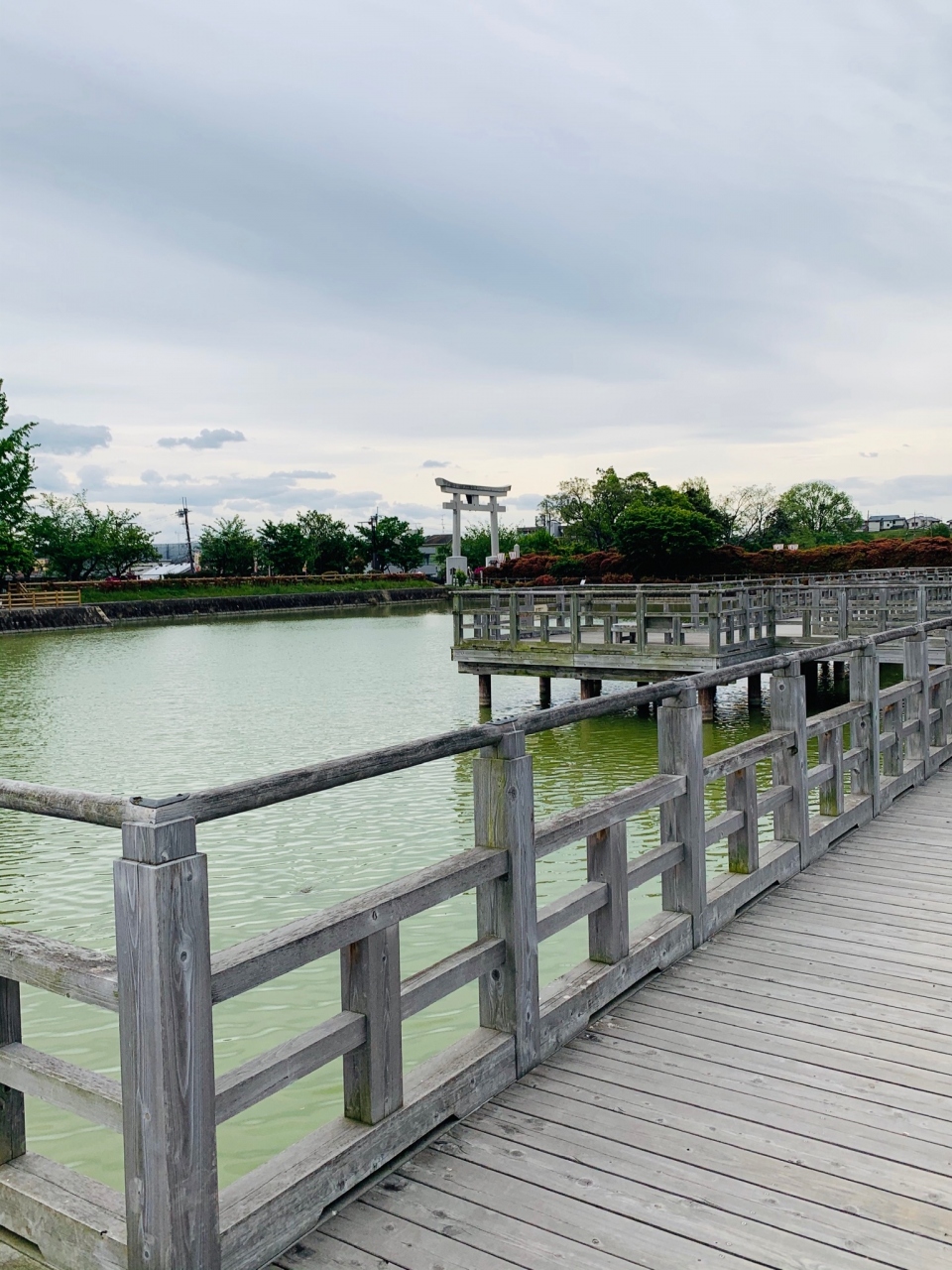 池の上には 「八条ケ池水上橋 」 があって、自由に歩けたり、東屋で休憩できたり、