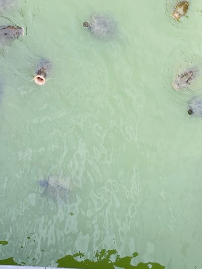 餌やり禁止なのに…なぜ寄ってくるのかなぁ? 誰か こっそり 餌あげているのかしら?- 旅行時期