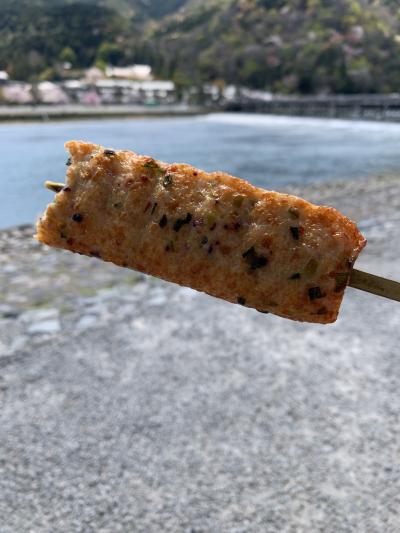 私は 「いかニラレッド」 を お持ち帰りして、桂川沿いのベンチで 食べた (^ ^)