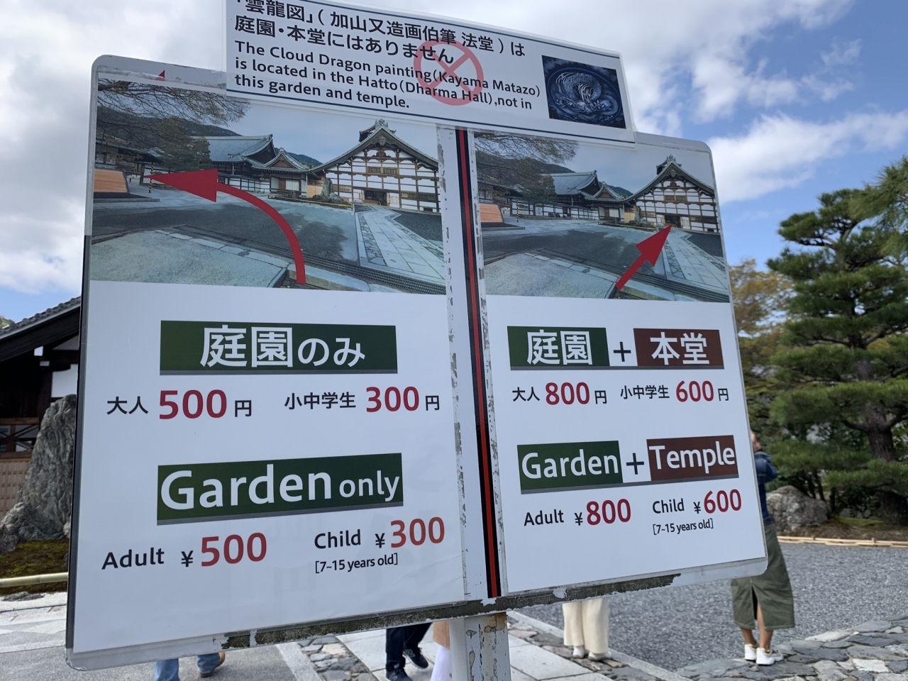 庭園のみ 大人 500円 庭園+本堂 大人 800円