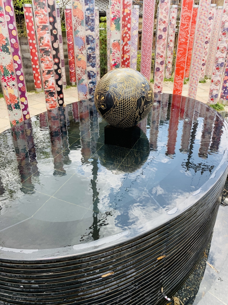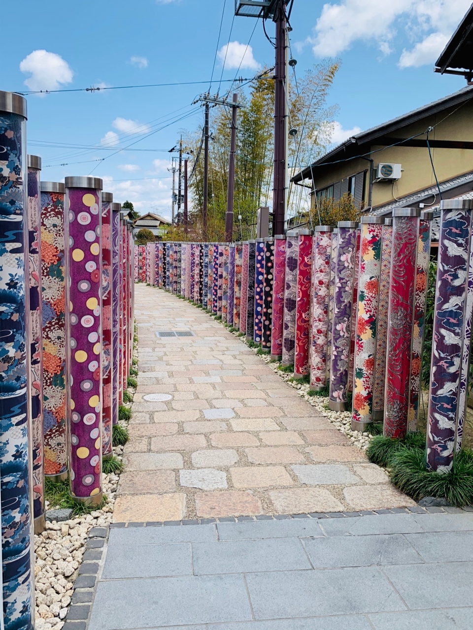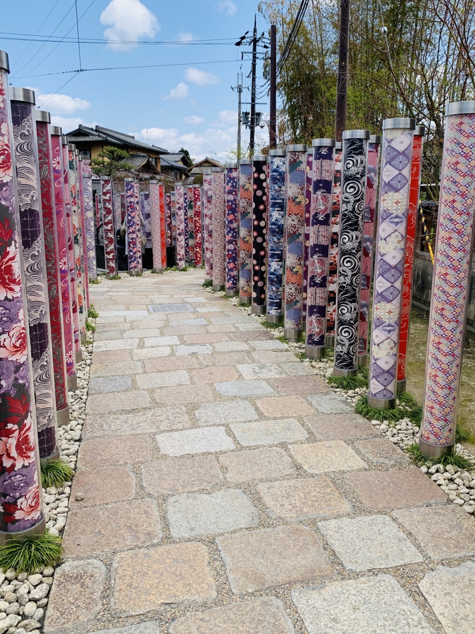 京都の伝統的工芸品である京友禅の生地を アクリルで包んでポールにしたものを、