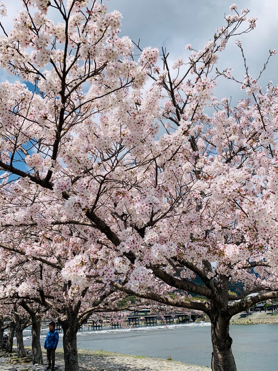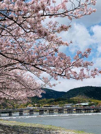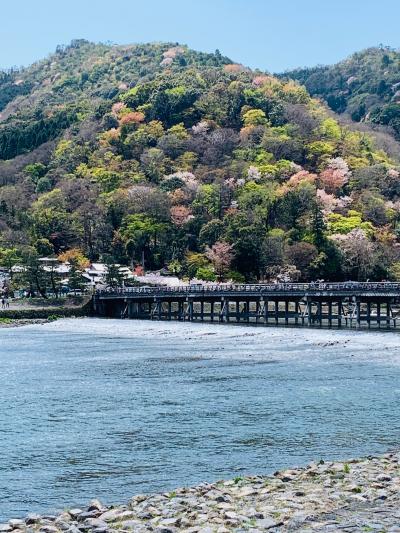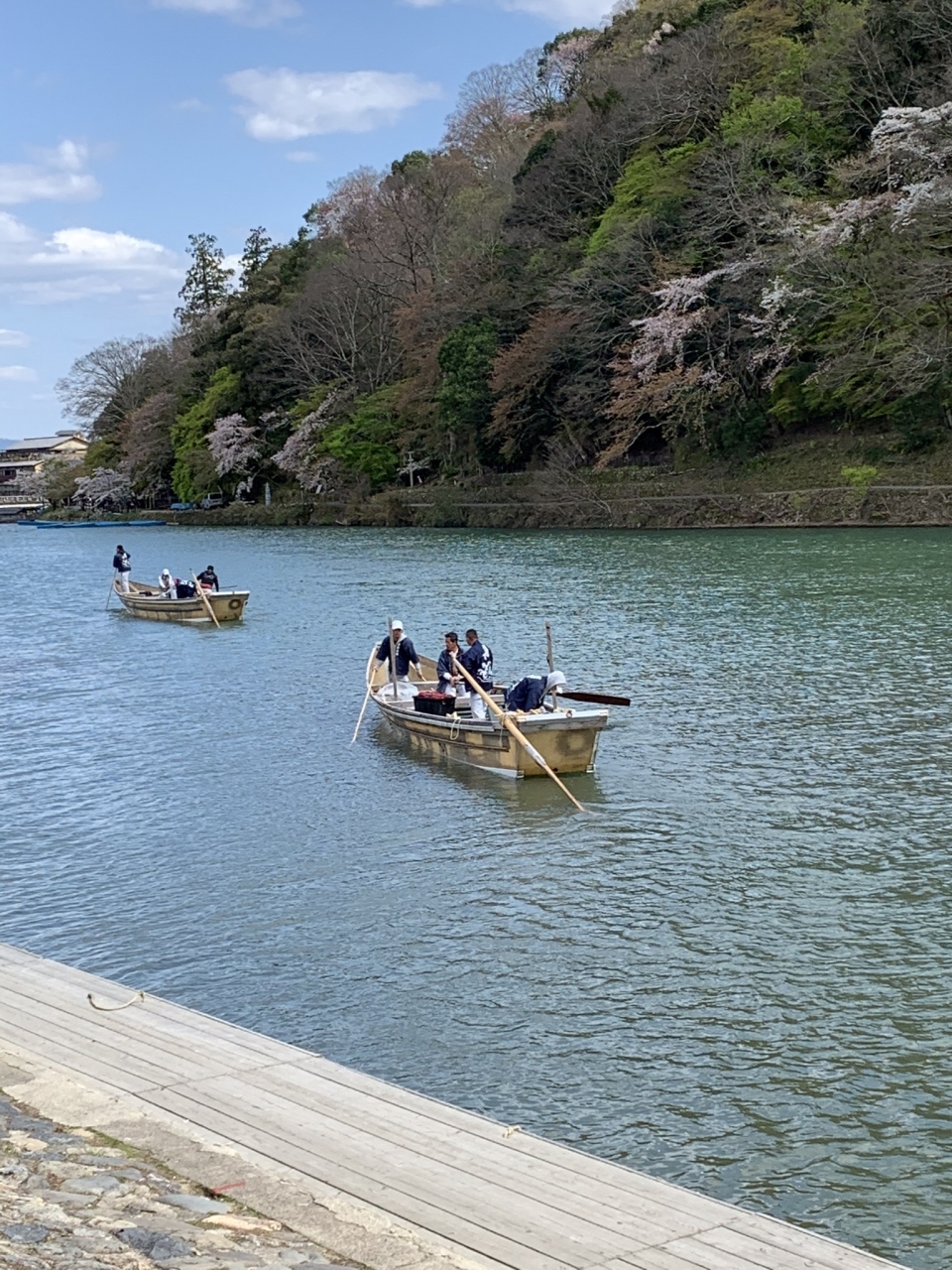 みなさま 「渡月橋」をバックに 桜のお写真 撮ってた