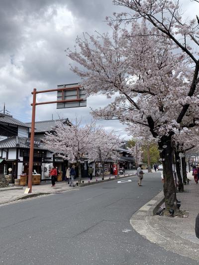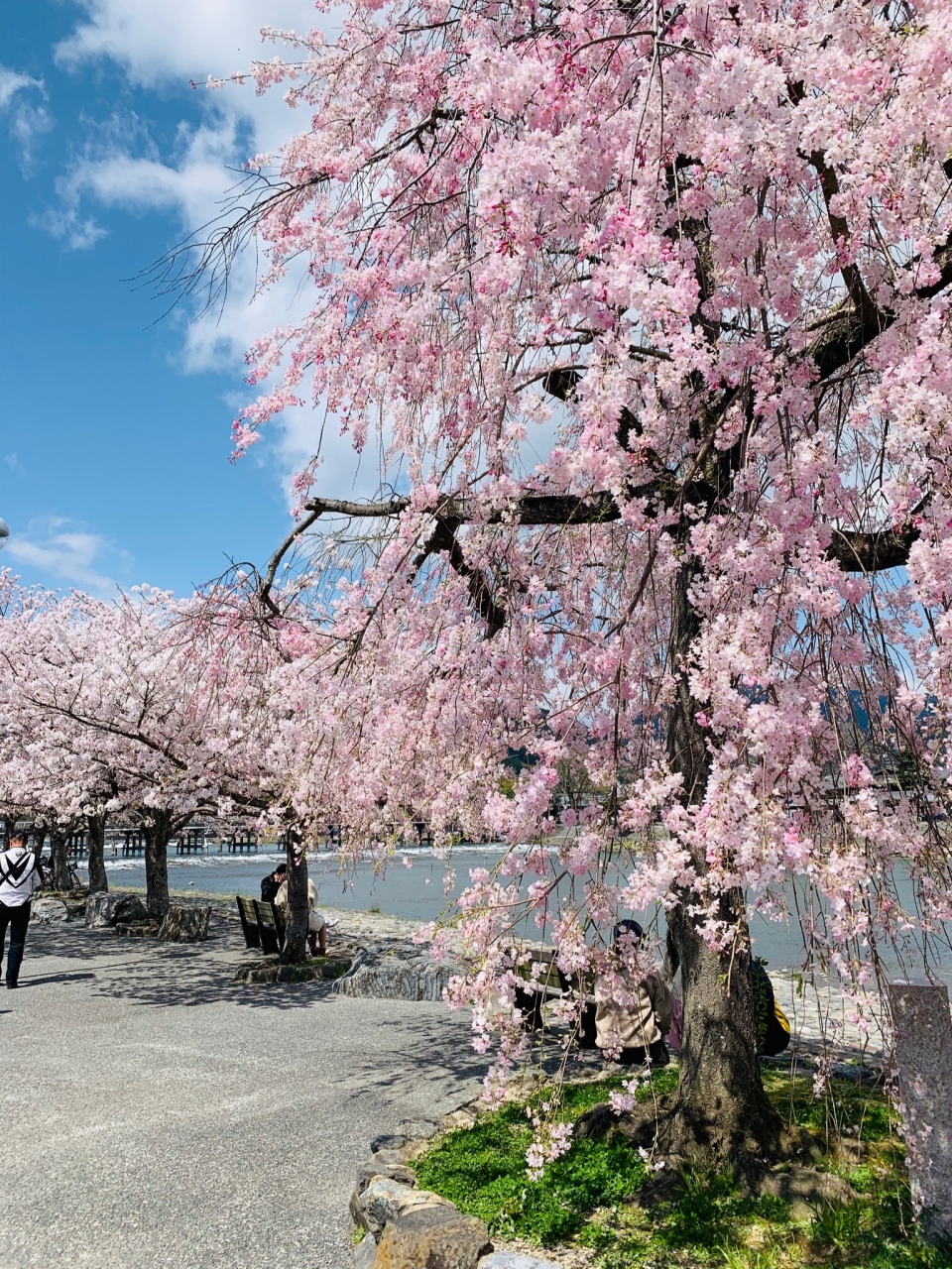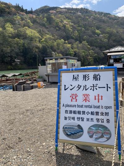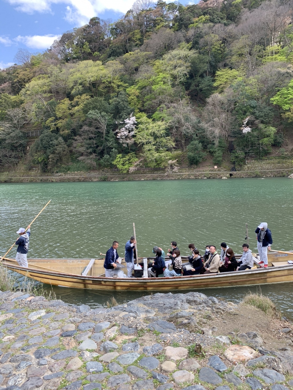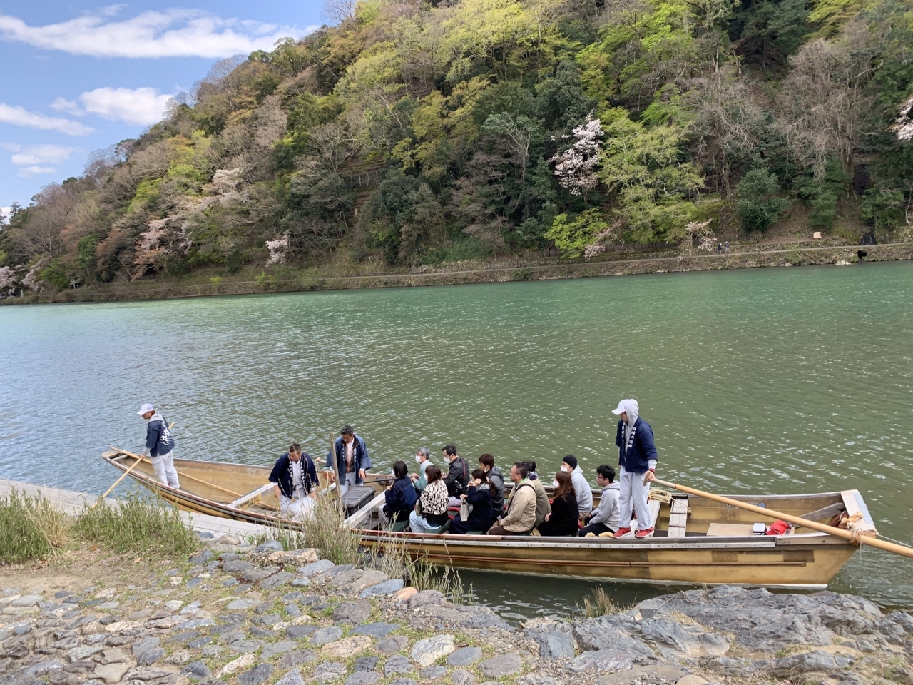 みなさま 「渡月橋」をバックに 桜のお写真 撮ってた