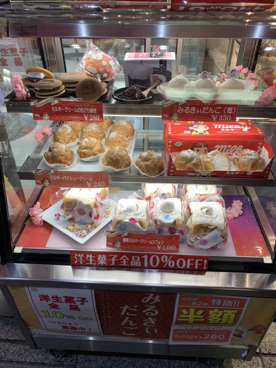 昔から ペコちゃんが お出迎えしてくれるお店