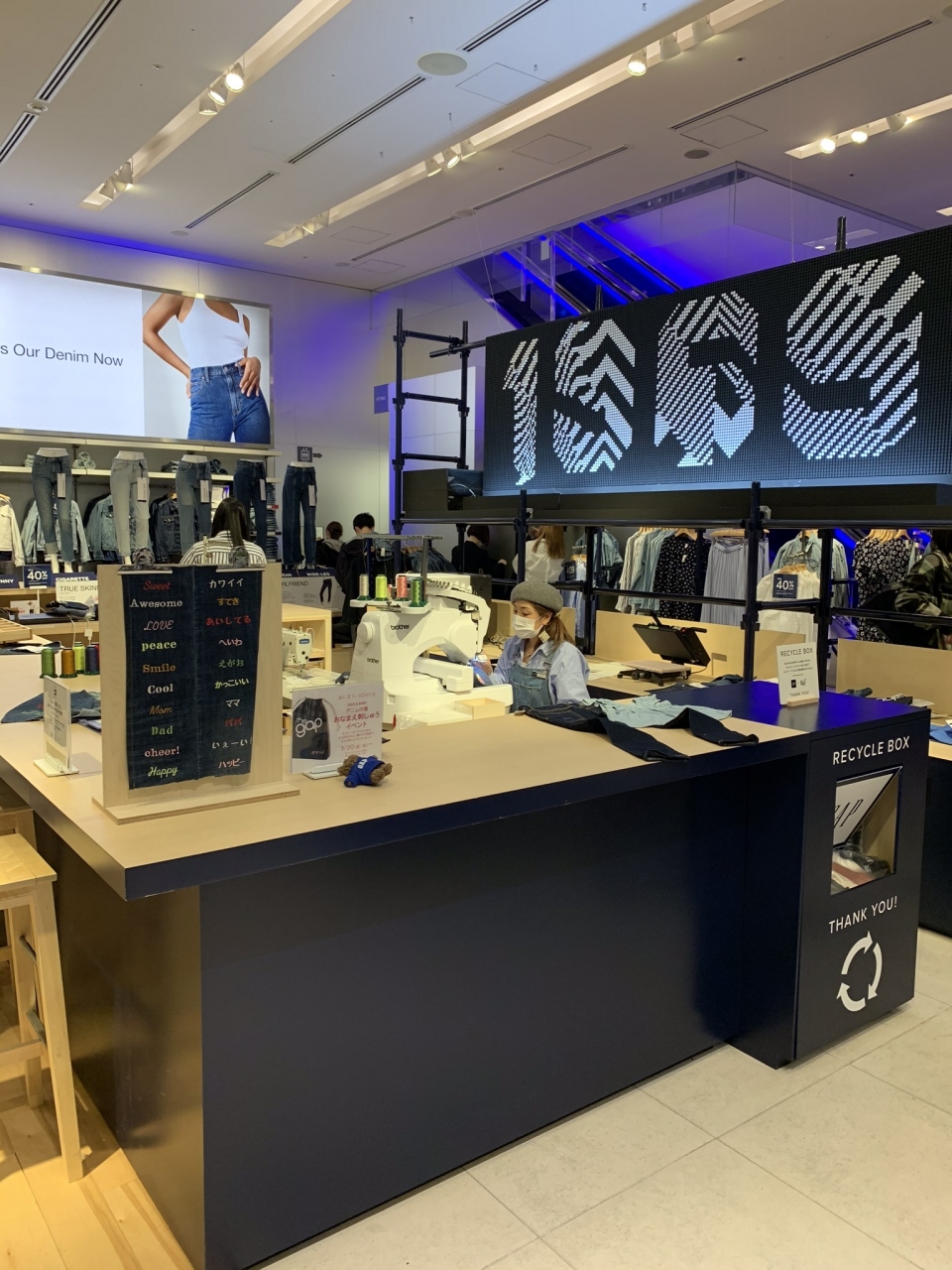1階奥の方に デニムに刺繍してくれるサービスがあったから