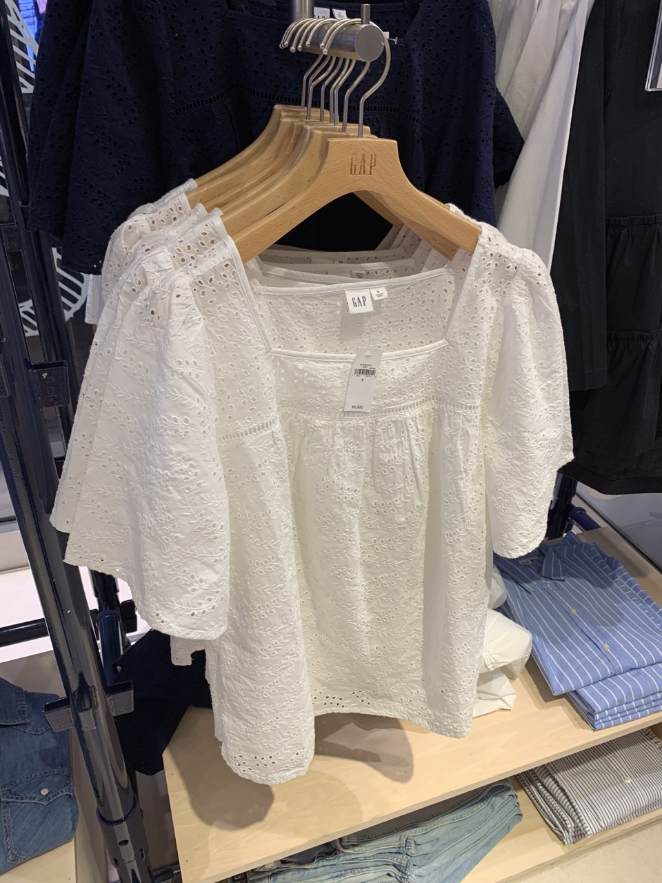 デニム以外にも、季節先取りの コットン ブラウスや、マキシワンピース など、可愛いアイテムが 並んでた。