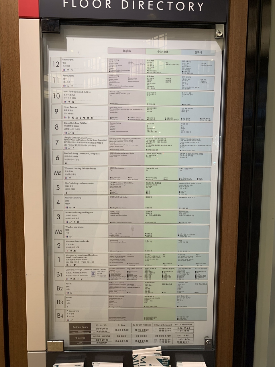 FLOOR DIRECTORY には 英語 中国語 のほか、ハングル語 でも書かれていた- 旅行時期